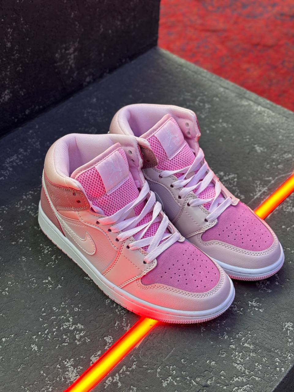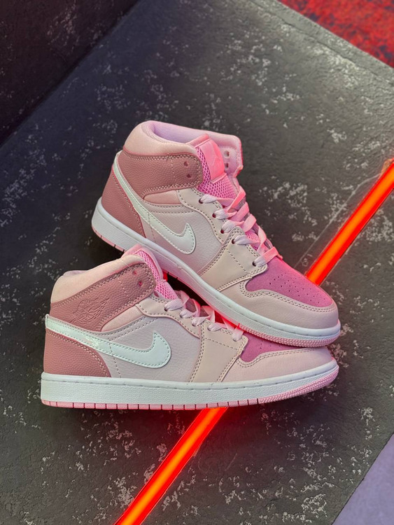 کتونی نایک ایرجردن1 ساقدار صورتی با بند اضافه و پکیج کامل برند نایکی