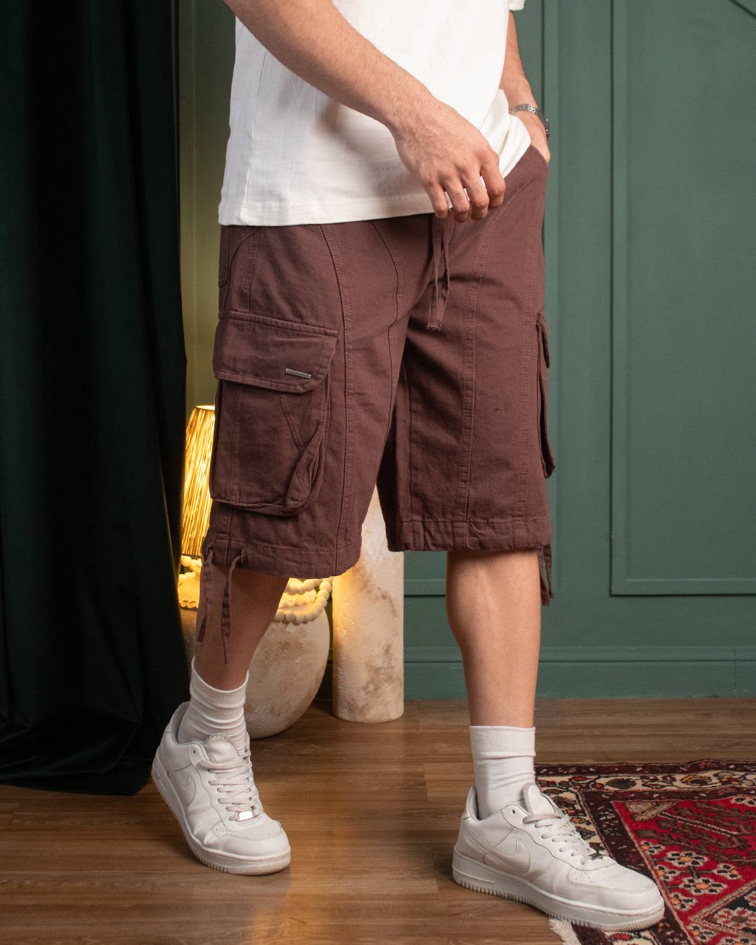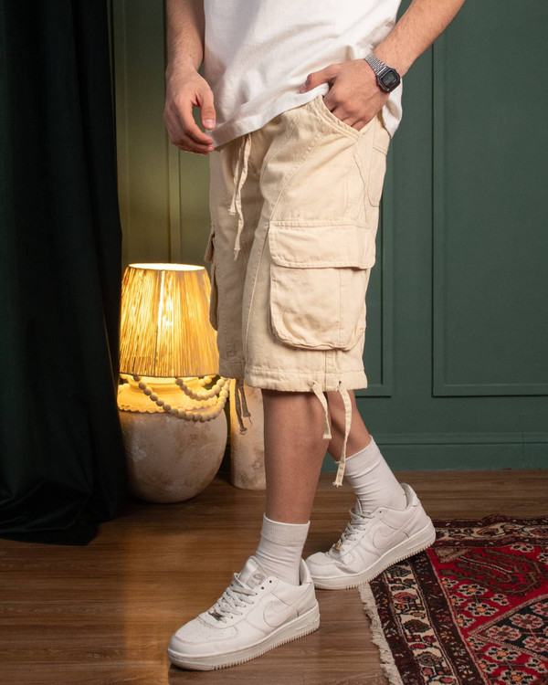 شلوارک کتان پنبه در رنگ های مشکی کرم استخوانی قهوه ای سبز